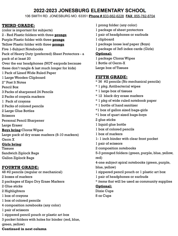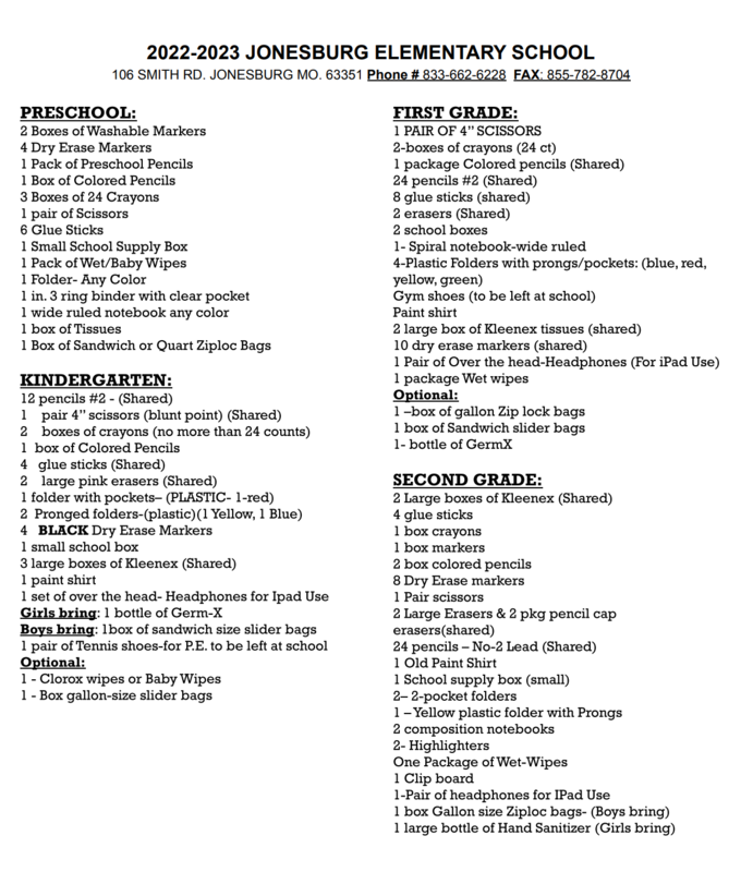 Here are the 2022-23 School Suply Lists.